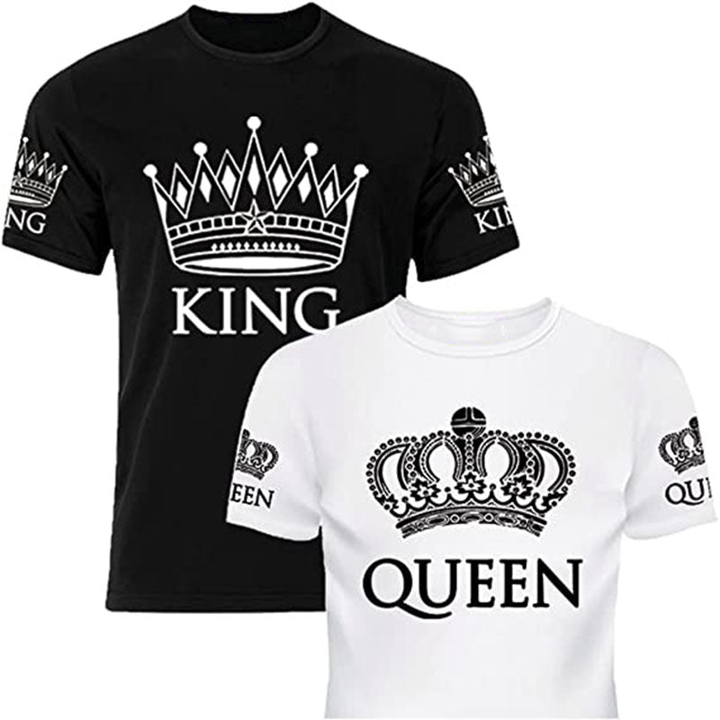 Matching Shirts for Couples Set for Him and Her King Queen T-Shirts Boyfriends Girlfriends Clothes Short Sleeve Graphic Tee Tops